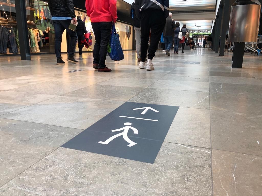 They will then notice the ‘wait here’ stickers including the shop’s logo that have been created for each shop. It is thus clear to visitors as to where they should wait once that store’s quota for visitors has been reached.