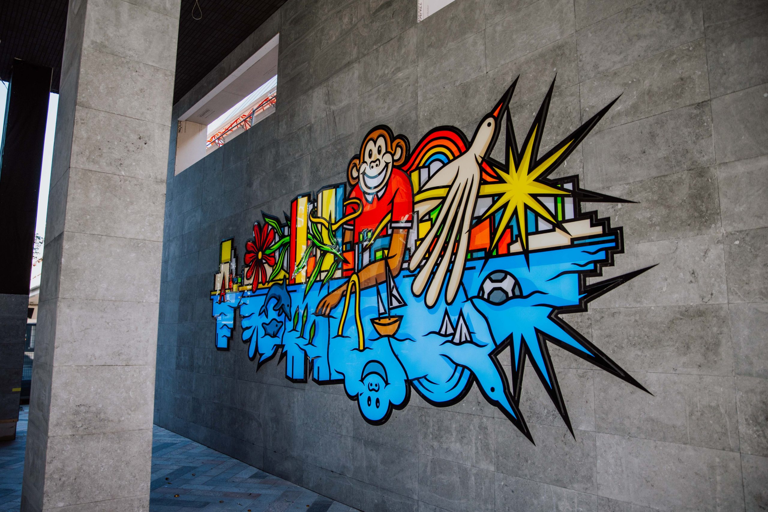 Lesley Bamberger, ceo Kroonenberg Groep, “In veel van onze projecten voegen wij kunst toe. Kunst zorgt voor een extra beleving voor de bezoeker van een gebied. Het inspireert en zet soms ook aan tot nieuwe gedachten. Wij zijn heel blij met het kunstwerk van Iwan Smit wat een bijzondere weergave is van de belangrijke elementen van Almere. Het is een kunstwerk waar je naar kan blijven kijken en steeds weer wat nieuws kan ontdekken. Dat maakt het extra bijzonder.” Het werk van Iwan Smit laveert tussen zware thema’s en lichtvoetigheid, vaak resulterend in kleurrijke werelden met een duistere twist. Voor Stad op waterspiegel liet hij zich inspireren door de herkenbare waarden van Almere, variërend van de skyline, voetbal, Ally de Aap en uiteraard het onmisbare water en groen.
