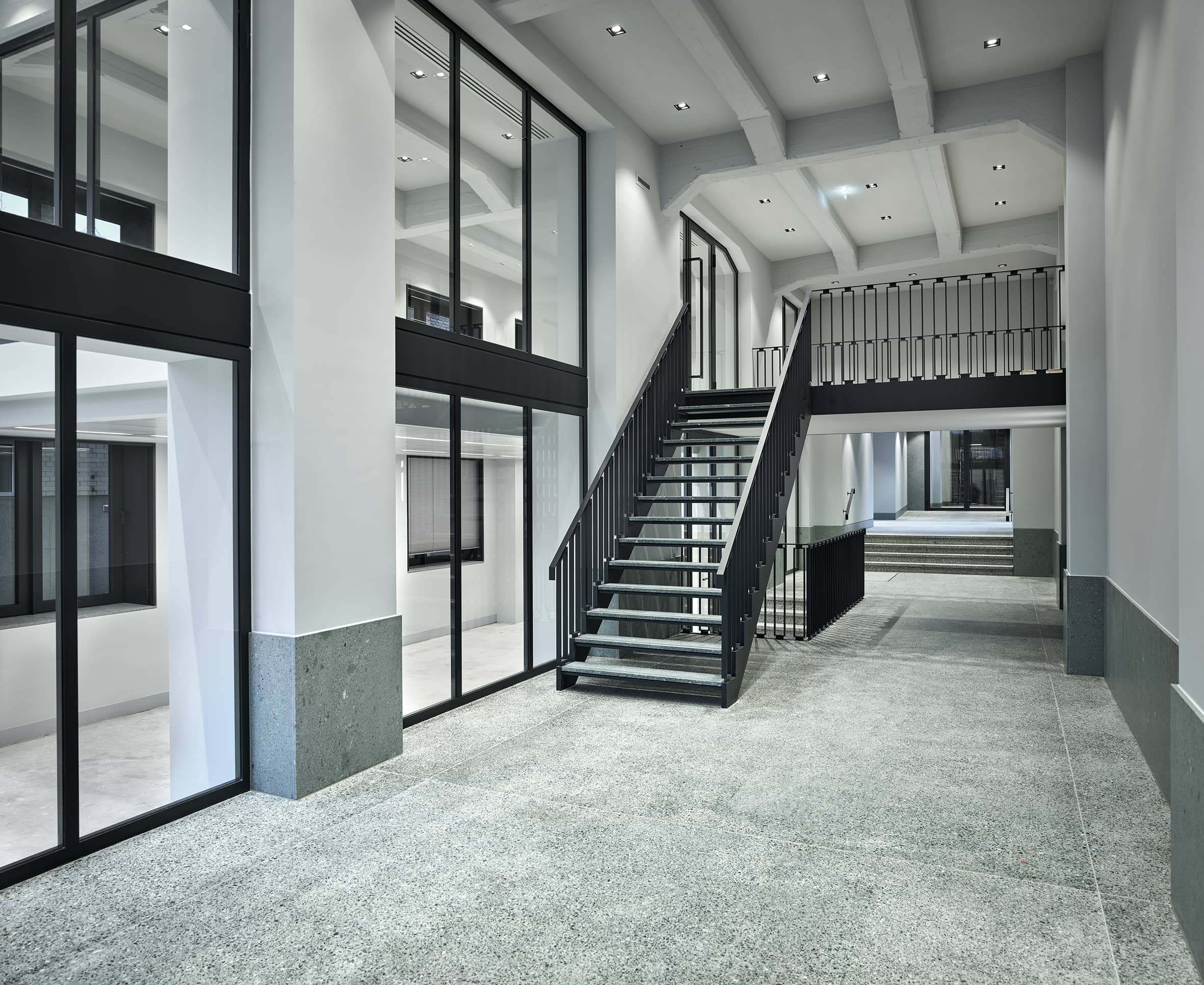 Een hoogwaardige transformatie van winkelmeters naar kantoorruimte. Twee reeds bestaande gebouwen, Kalverstraat 48 en Nieuwezijds Voorburgwal 269 zijn onderling met elkaar verbonden. De royale entreehal, gelegen aan de Nieuwezijds Voorburgwal wordt getekend door een warmgroene terrazzovloer. Aan weerszijden van de entree bevinden zich kantoorruimten, over twee lagen verdeeld. De kantoorruimtes op de 2e en 3e verdieping zijn gelegen aan de zijde van de Kalverstaat en middels een trappenhuis en lift verbonden met de ruimtes op de begane grond. Een ingrijpende renovatie met hoogwaardig afgewerkte kantoren. Het is nu een duurzaam en toekomstbestendig gebouw.
